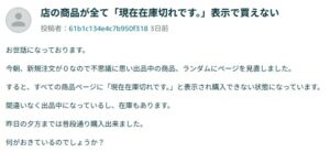 なんだろう?と思ったらほとんどの商品が「現在在庫切れ」に。